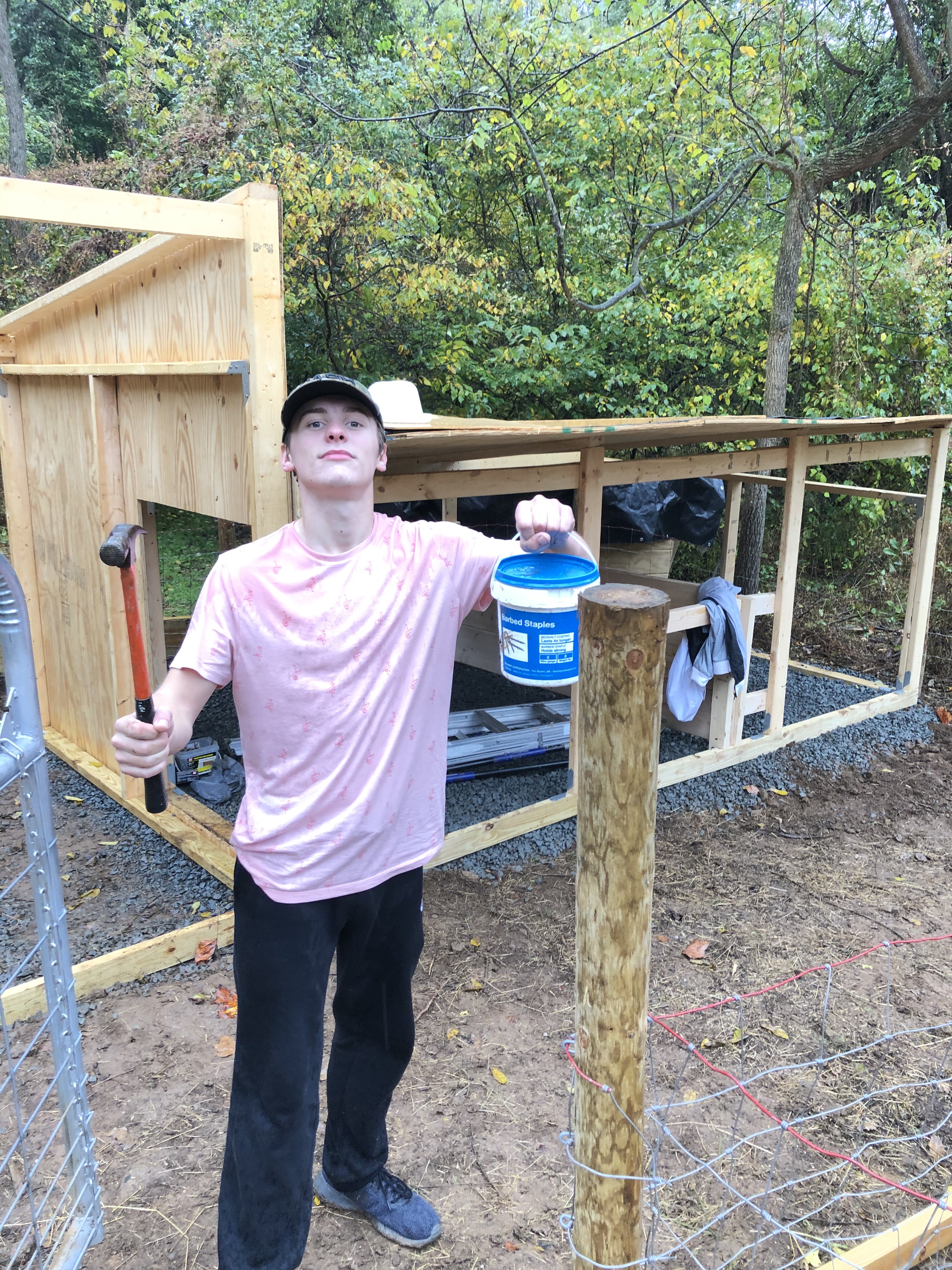 With the pigs safely returned to their pen we turned our attention to figuring out how they had gotten out. We, that is Scott, was in the process of building them a shelter, or as he called it, the Shig Shack. You see, the shelter would be shared by both sheep and pigs for the winter months until the pigs were bigger and needed more room and we had gotten the sheep shelter in order. He had temporarily sectioned off that part of their enclosure, with emphasis on the word temporarily, and had also removed a fence post behind the structure to be able to get more room to work. He had worked on their shelter long after dark, and then forgotten about how the fence had been compromised at those spots. The pigs must have been thrilled when they the following morning discovered that they were able to go exploring.