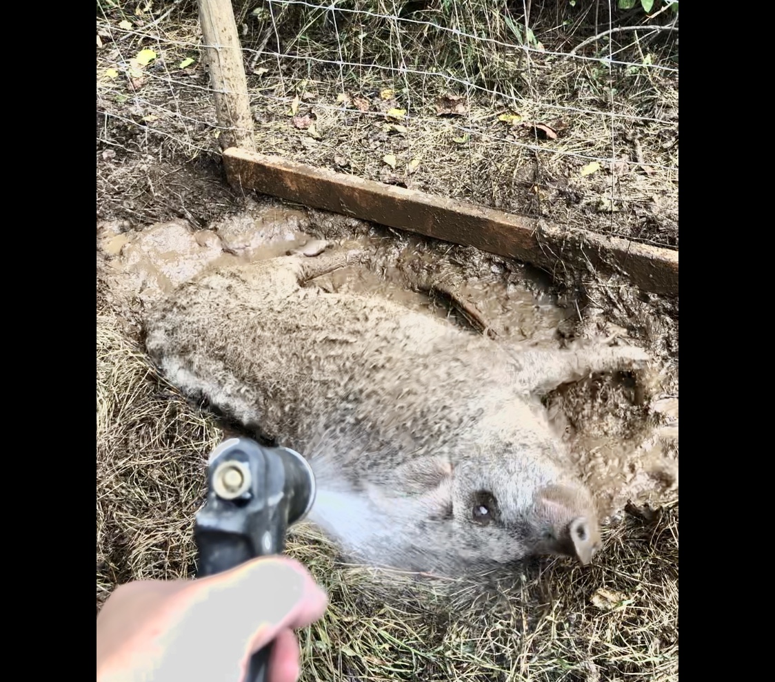 Just two weeks prior, my daughter had yelled to us that “the pigs are out” but at that time they were on the path steps away from the pen just munching away on fresh grass and were easily lured back into their pen by tempting them with a few apples. After that incident I told my softhearted husband that electric fencing was a must. He had been against it thinking the fence was enough and was quite insistent over the fact that there were no signs of attempted porcine jailbreak. My reply had been that the sign of them “trying to get out” would be that they WERE out. However, I still yielded to his wishes and instead got boards to screw in all around the bottom of the fence line. Their last escape had proved that if their snouts got under the fence while rooting and they noticed that they could lift it up they would be out in a blink! Pigs are said to be as intelligent as dogs. Dogs figure things out, and I’m now wondering if pigs actually are smarter than dogs…. hmmm.