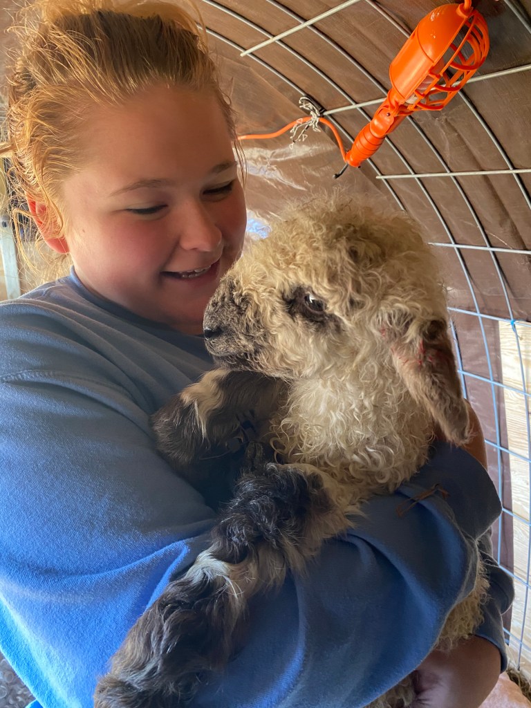 Then May FINALLY came and our very own Buttecrup was up. She held on a few extra days so she could deliver on Mother’s Day! Buttercup seemed a little confused and didn’t want any of us close, but she also did have no idea what was happening. In spite of that, she did what all the other mamas had done. She got up and down. She pawed the ground. She walked in circles. She baahd. And then she finally started pushing. After 30 minutes she delivered Gratitude Acres’ FIRST F2. A little girl my daughter promptly named Carolina. An F2 means it’s a second generation breed up lamb, 75% Valais Blacknose Sheep. And…lambing season is OVER for this year! And already my head is spinning trying to plan for the fall and next year’s lambing results.
